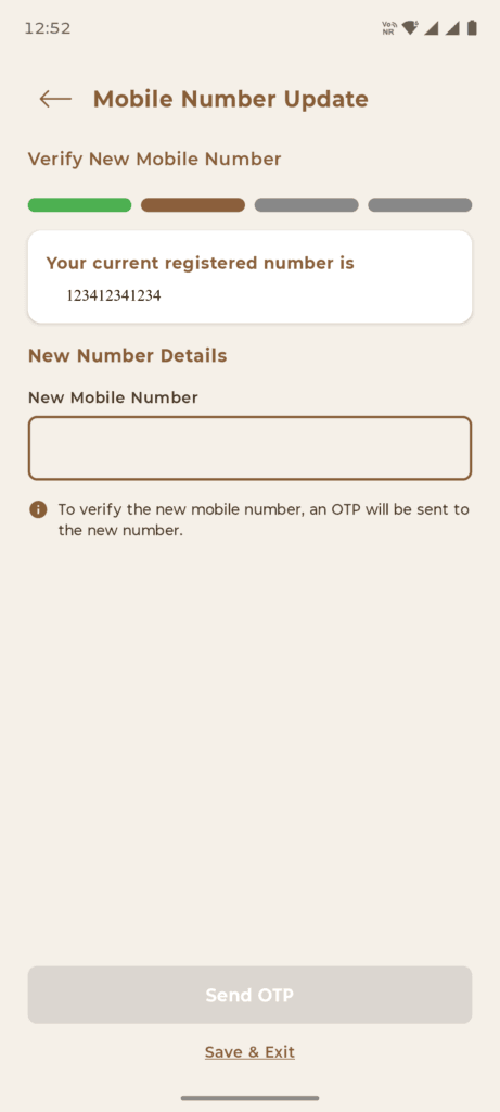 - इसके बाद Send OTP पर क्लिक करें और नये mobile number पर OTP आएगा उसे डाल कर verify करें ।